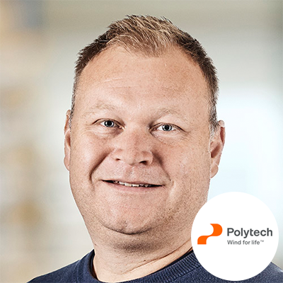 Michael Drachmann Haag is a Materials Engineer/Specialist at Polytech. He has more than 18 years of experience from the composite industry, primarily within the field of developing new materials and processes for wind turbine blades and conducting root cause analysis of blade surface degradation and leading edge erosion.